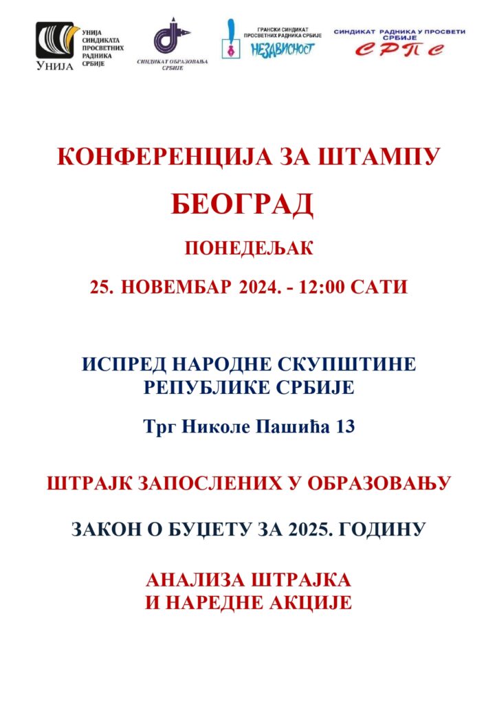 КОНФЕРЕНЦИЈА ЗА ШТАМПУ ИСПРЕД НАРОДНЕ СКУПШТИНЕ РЕПУБЛИКЕ СРБИЈЕ