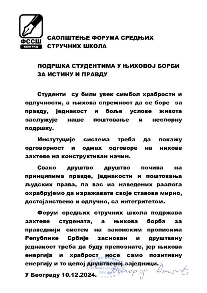 САОПШТЕЊЕ – ПОДРШКА СТУДЕНТИМА