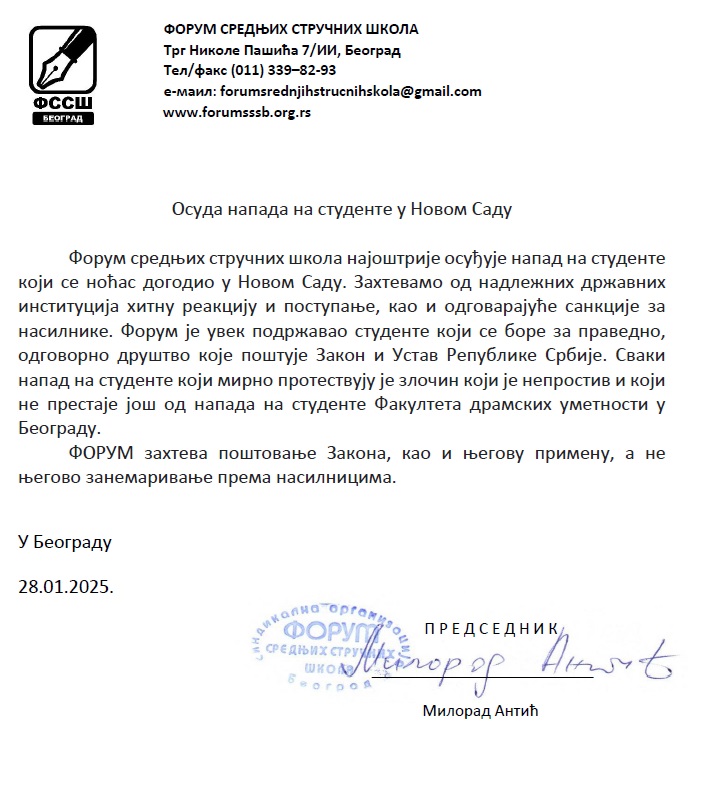 ОСУДА НАПАДА НА СТУДЕНТЕ У НОВОМ САДУ