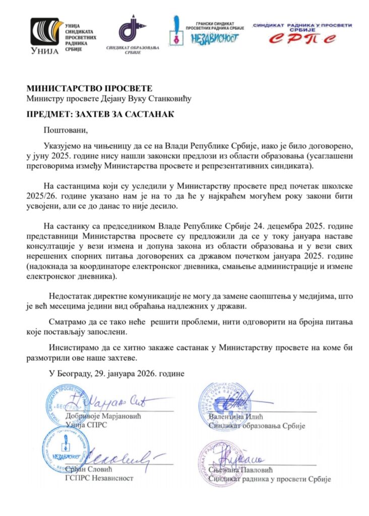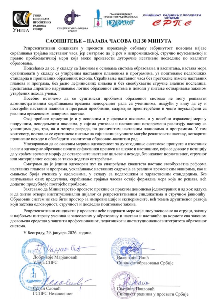 Саопштење четири репрезентативна синдиката